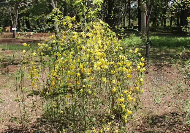 オウバイ(黄梅)は剪定せずに育てることも出来ますが、より健康で美しい株を維持し、開花を促すために剪定が推奨されます。例えば、剪定により、枝の流れが一定になり美しい樹形となります。また株の大きさが一定に保って通行人の邪魔になることを防げます。