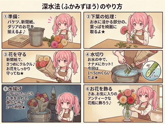 - 深水も水揚げを助けるため、水揚げが悪いと感じる場合等は試してみるのも良いでしょう。