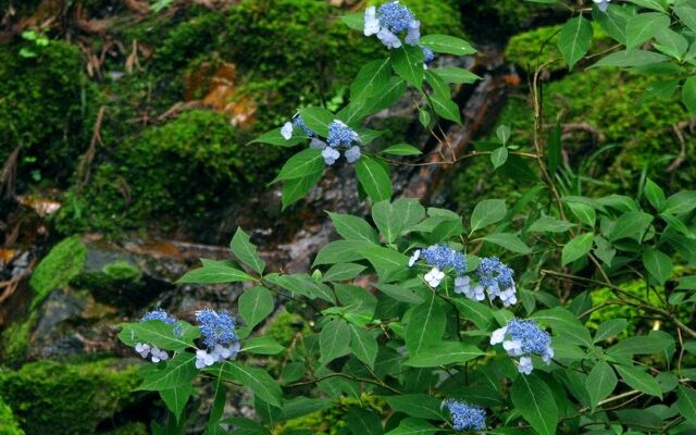 アジサイ(ガクアジサイ)の原産地は日本で、足摺岬、硫黄半島、硫黄諸島、伊豆半島、伊豆諸島、房総半島、三浦半島に分布しており、海岸沿いの山地などに自生しています。