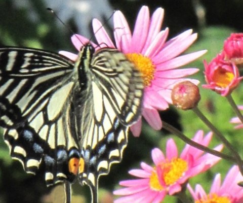 - 蜜源:本種の花は蝶々に好まれる蜜源の一つです。花の上に乗ってストローを伸ばし蜜を集める姿は可愛らしさを感じさせ、また花の周りで飛び回る姿もお庭に優美さや活気を与えます。そのため、昆虫と共生し楽しいお庭作りをしたい人にもおすすめの植物です。