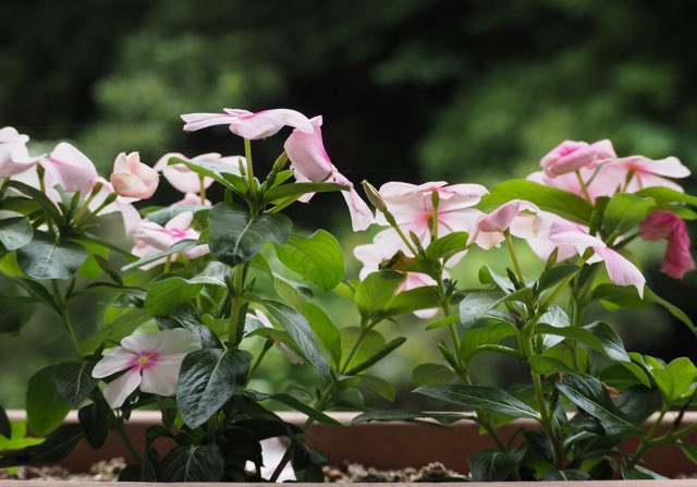 備考:ツルニチニチソウ(Vinca major)と比べて草丈・茎・葉・花が小さく、特に葉が細くて小さいため繊細な見た目をしています。園芸品種が非常に豊富です。