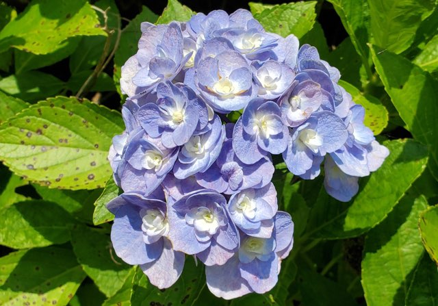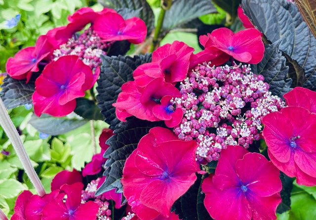 - 花の魅力:本種の花房は直径30cmに達することがあるため非常に巨大で強い存在感を感じさせます。花房を構成する装飾花は高密度についており、直径は1~2cm程度と小振りです。そのため、本種の花房は豪華でありながらふわふわとした柔らかな印象や、緻密で洗練された印象を与えやすいです。花の色はpHに左右されず、個体の花色がそのまま現れます。